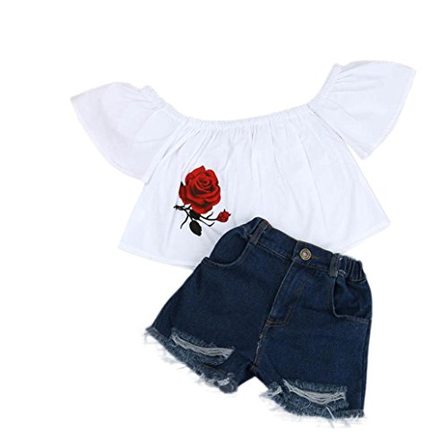 -. Title : Fabal Toddler Baby Girl Shoulder Flower T Shirt + Denim Pants Outfit Clothes Baby Set