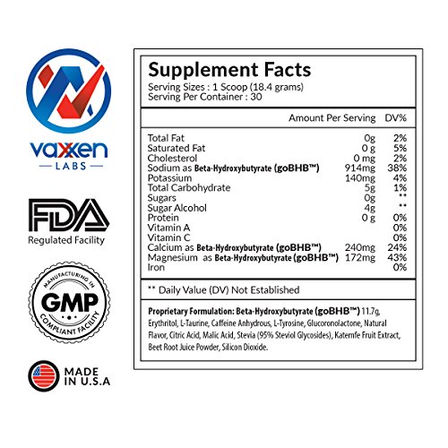 TURBOCHARGE YOUR BODY NATURALLY WITH KETO1 by VAXXEN LABS Keto1's beta-hydroxybutyrate (bhb) salts encourage your body to burn fat and produce ketones instead of sugar as a fuel source. This is a much better alternative to getting your energy from sugary drinks, then crashing. PERFECT FOR ATHLETES SEEKING BETTER PERFORMANCE Intensive training can leave your body drained, which sometimes prevents you from pushing yourself to the max. Give your body the energy it deserves by simply adding one scoop of our keto drink mix into a 12-16oz bottle of cold water or your favorite shake. You'll notice an increase in performance levels immediately. AN EFFECTIVE WAY TO MANAGE STRESS When you feel stressed, noradrenaline is released by your brain to stimulate your central nervous system and offset stress levels. The problem is that our bodies take a long time to replenish the noradrenaline supply once depleted. Keto1 speeds up the process of replenishing your noradrenaline supply to reduce stress faster, or even prevent it entirely. Why Choose Keto1's Ketone Supplement - Boosts energy and motivation levels.
