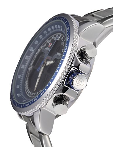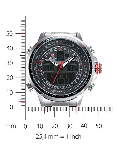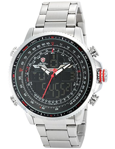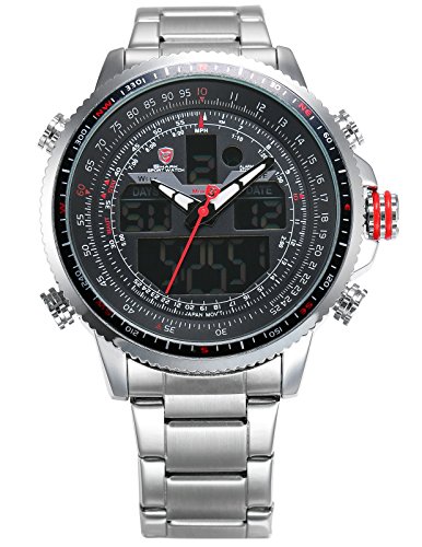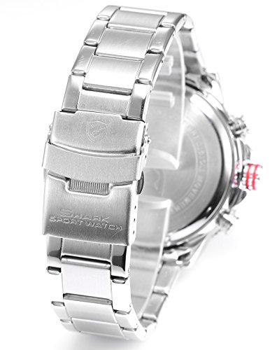 -. Binding : Watch -. Brand : Shark -. Department : Mens -. EAN : 0705615700597 -. Feature : Shark sport watch.Winghead Shark Series / Pursue the dream of flight, the timepiece has a handsome appearance and features precision chronograph that can meet the accurate control of time. / Big size design watch. XXL.The case crown surrounded by crown guards has two rubber rings making it easy to grasp and add a sense of dynamic and causal. / Dual movement with the latest breakthrough technology.Digital and Analog can be displayed at the same time.Alarm and stopwatch function.Day and Date display with LCD display / Daily water resistant (Not suitable for swimming, diving, shower etc.) If you need a detailed instruction manual PDF, please contact us directly or go to the official website to download -. Label : SHARK -. Manufacturer : SHARK -. Model : SH325 -. MPN : SH325 -. PartNumber : SH325 -. ProductGroup : Watch -. ProductTypeName : WATCH -. Publisher : SHARK -. Studio : SHARK -. Title : Shark Men's SH325 "Winghead shark" Digital/Analog Quartz Day/Date/Alarm Stainless steel Wrist Watch -. UPC : 705615700597