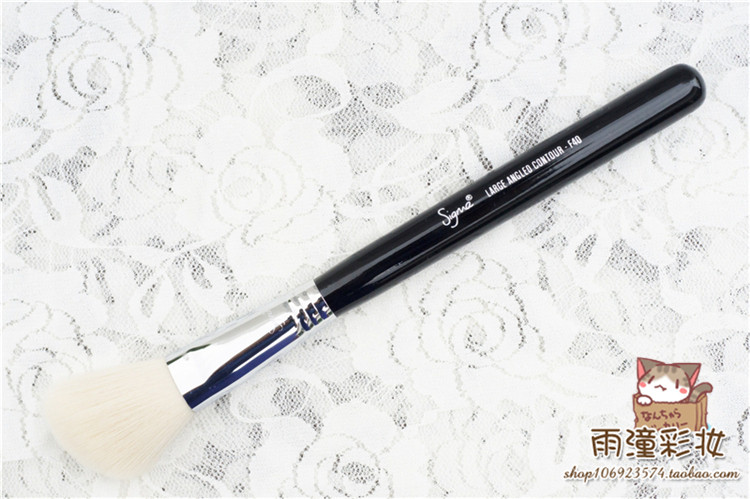 F40:毛头大一些 ,斜角 腮红刷 ,也是一把多功能的刷子。 可做修容和腮红,用过修容的妆面和没有修容的装看起来是完全不一样的哦, 用完不仅脸型显小 ,整个妆面看上去更加立体,在配上鼻影刷,那就完美了,