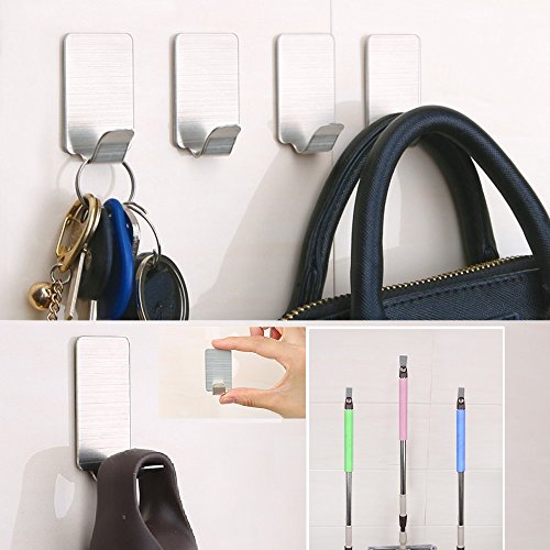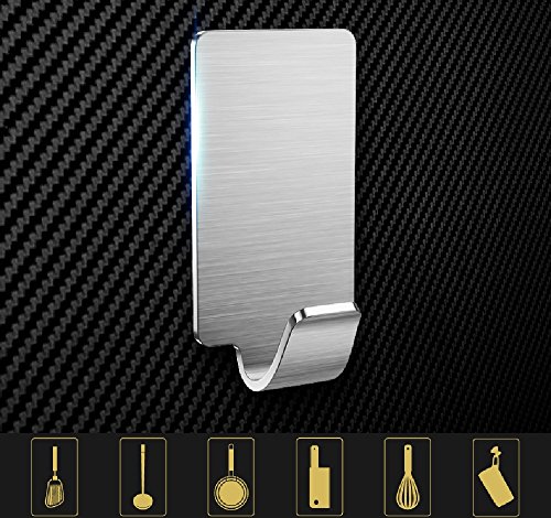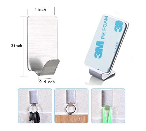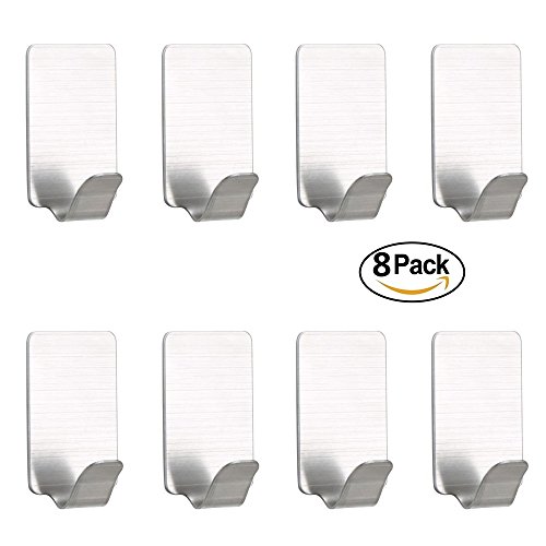 8 Pack Stainless Steel Hooks, Anteer 3M Self Adhesive Wall Hooks for Towel Robe Coat Hanger and Key Rack Garage Storage Organizer Heavy Duty Brushed Finish (Style 3)