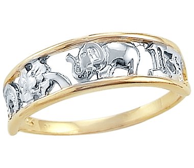 -. Title : 14k Yellow and White Gold 2 Tone Elephant 13 Ladies Ring