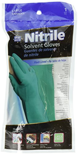 West Chester 00121 Nitrile Unsupported Flock Lined Glove, Work, Straight Cuff, 15 mil Thickness, 13" Length, Large, Green (Pack of 1 Pair)