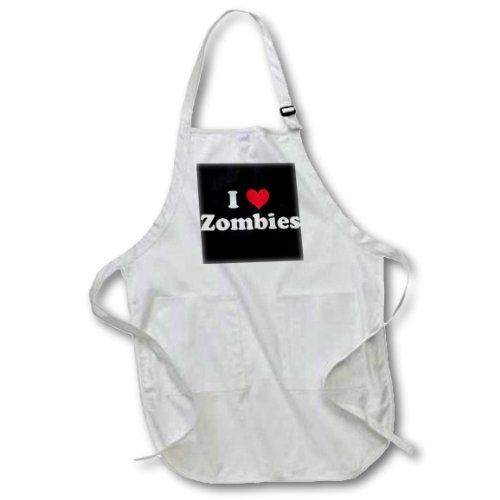 3dRose apr_16571_2 I Love Zombies-Medium Length Apron, 22 by 24-Inch