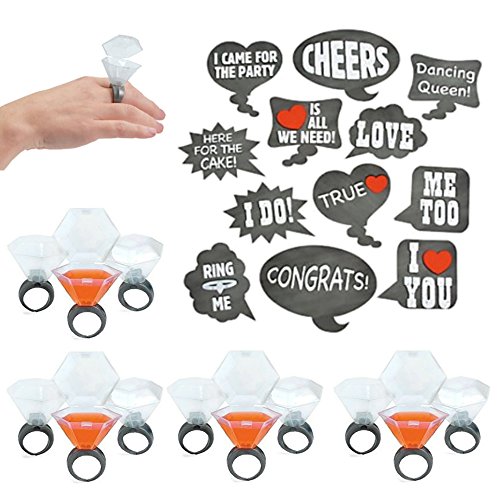 Wedding Party Supplies Bundle Kit (24 Pieces): Includes Plastic Cocktail Rings 12 Pieces and Photo Cutout Wedding 12 Pieces - Cardboard, Good Idea for...