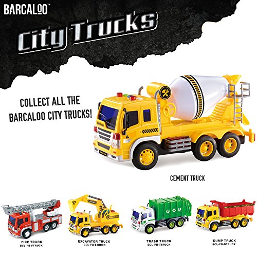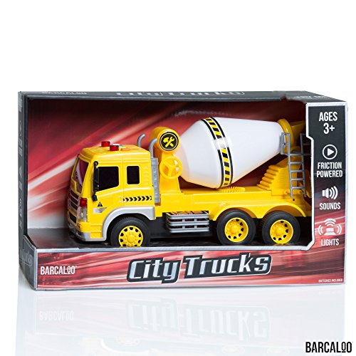 -. Binding : Toy -. Brand : Barcaloo -. Feature : FRICTION POWERED - Simply push the garbage truck forward and it will keep truckin' on its own. / 4 FUN SOUNDS - Comes with four fun realistic trash truck sounds. / FLASHING LIGHTS display when it sounds so all the other toys will know to get out of the way. / REALISTIC MOVING PARTS - These highly detailed garbage trucks feature realistic moving parts. The garbage truck door opens and closes to collect and dispose of trash. / BATTERIES INCLUDED for instant fun! All Barcaloo Toy Trucks come with batteries installed, so your kids can start playing with their garbage truck toy right away, no set up required. -. Label : Barcaloo -. Manufacturer : Barcaloo -. ProductGroup : Toy -. ProductTypeName : TOYS_AND_GAMES -. Publisher : Barcaloo -. Studio : Barcaloo -. Title : Friction Powered Toy Trucks - 5 Designs to Choose From!