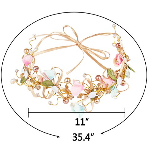 Jaciya Bridal Flower Garland Crown Flower Headband Hair Wreath Halo with Flower Wrist Corsage for Wedding Festivals