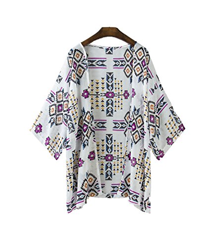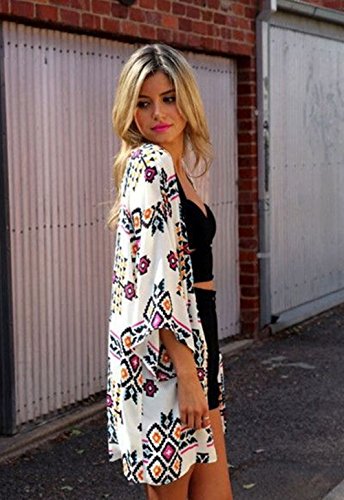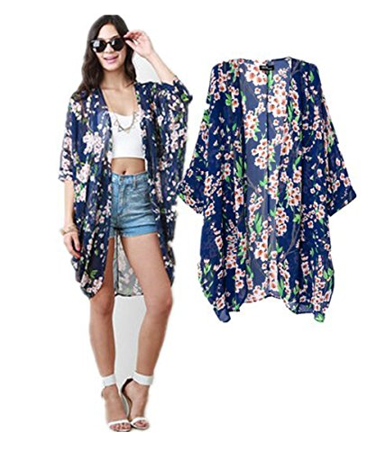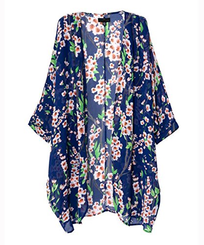 Vintage Women Floral Print Long Loose Kimono Cardigan Blouses Beach Cover Up