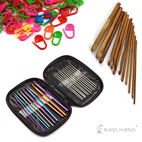 RayLineDo 22pcs Mixed Aluminum Handle+ 12pcs Bamboo Handle Crochet Hooks Needles Yarn Weave Knit Craft Set with 20PCS Knitting Crochet Locking Stitch Markers