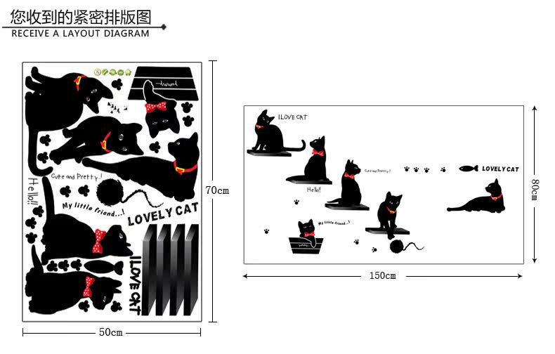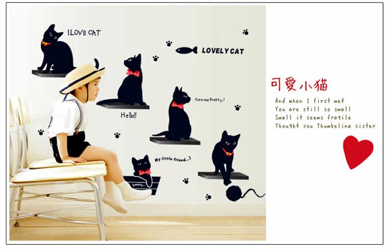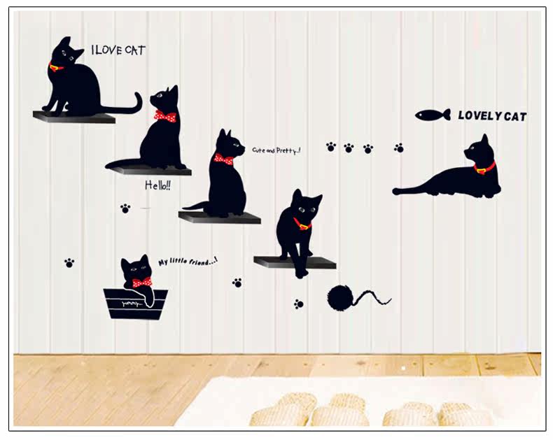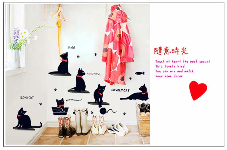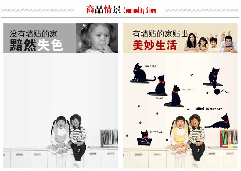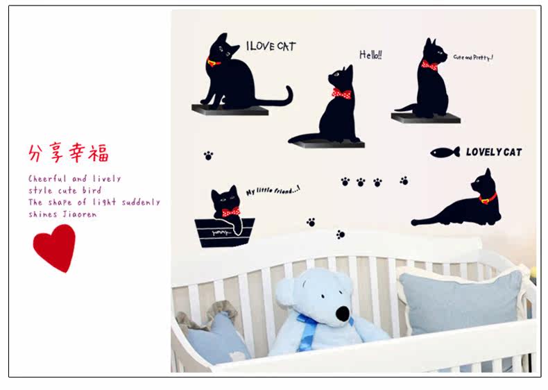 【品牌】格林斯 【名称】黑白猫 【样式】平面墙贴 【单位】套