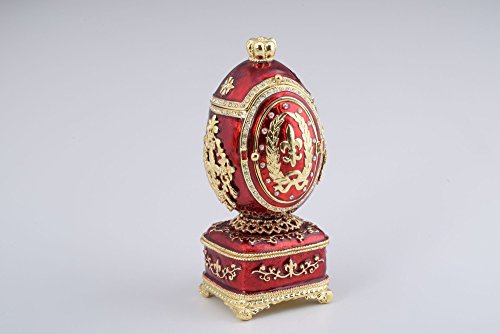 - Title : Red Royal Faberge Egg Handmade Trinket Box with Flowers Window