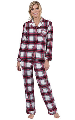 PajamaGram Fireside Fleece Matching Family Pajamas, Red, Women MED (8-10)