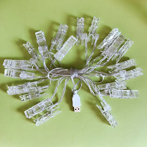 - 12 Feet, 20 LED Photo Clip String Lights, USB Powered