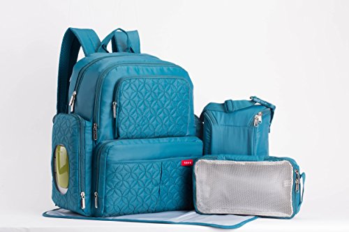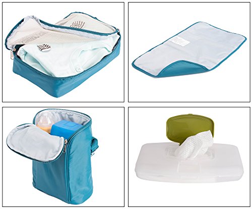 -. Feature : 6 pieces set of diaper bag / 1. Extra roomy main compartment with multipe pockets ,Reliable zip-top closure with grab handles and adjustable shoulder strap, This bag have total of 11 pockets interior & exterior pockets for your organization. The Main Bag also come with strollers attachments. You can easily attached on your Strollers for busy Mom. / 2. Personal Accessories case with zip closure for mom on the go. 3. Matching Padded Changing Station / 4.Multi-purpose function mesh bag for clothing, snacks or others stuffs. / 5. Insulated zippered Bottle bag, fits Most size bottle. 6. Accessory cases for smaller items