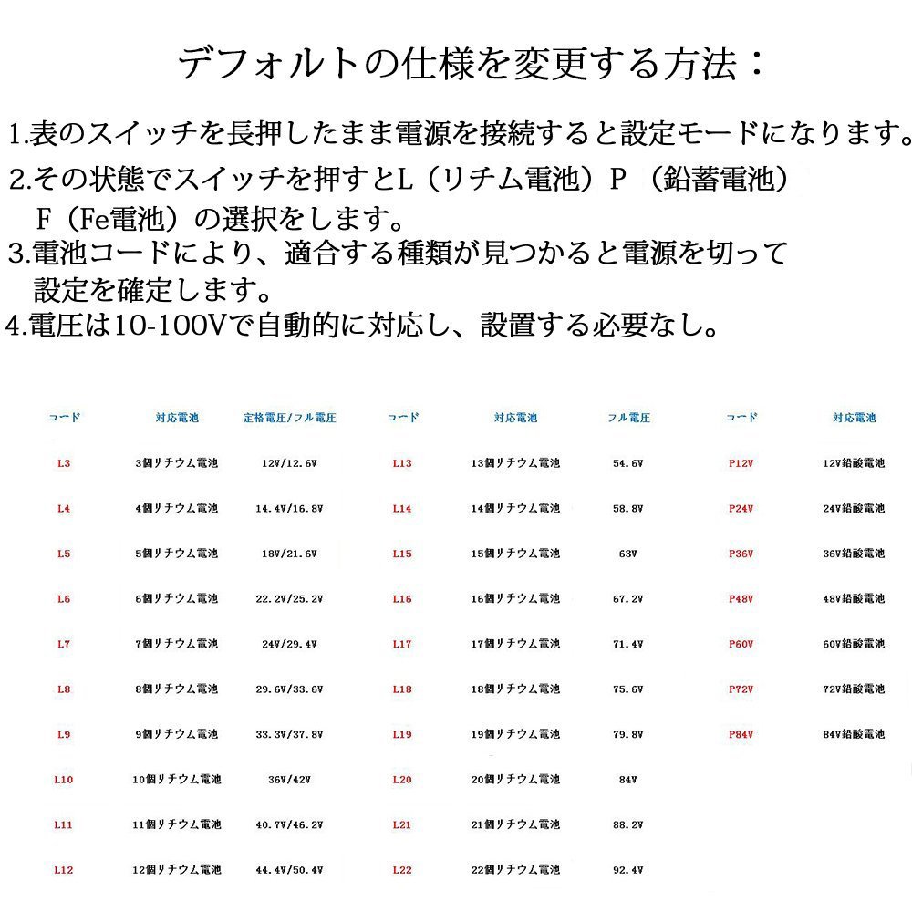 2. In that state, press the switch to select L (lead storage battery), P (lithium battery), F (Fe battery).