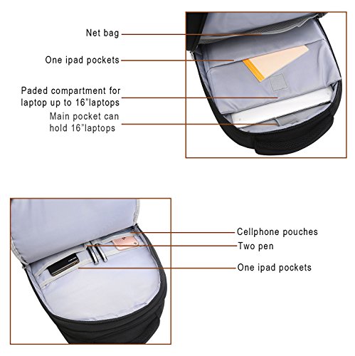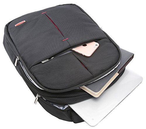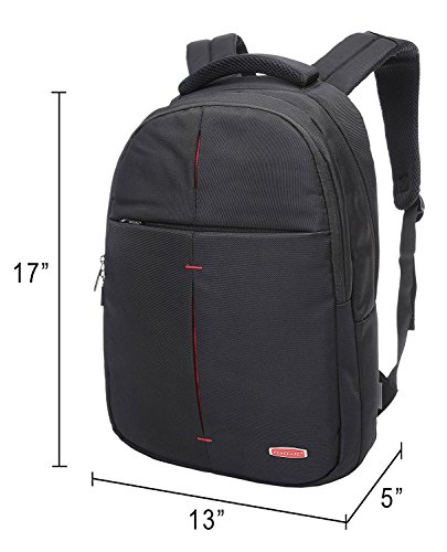 -. Feature : ★ Material: The school backpack is made from tear-resistant and water-resistant nylon with smooth and well-sewed fabric lining / ★Double Laptop Protection: The college backpack with laptop compartment has a thick padded laptop sleeve to hold a 13", 14" or 15.6-inch laptop secured by a Velcro band / ★Multiple Pockets: The slim backpack could hold your clothes, laptop, books, binders in 2 main compartments, 1 laptop sleeve, 2 inner pockets and 1 outside zipper pocket. 3 slots could well organize and easy access your pens, phone, passport or power bank / ★Good Student Backpack: Designed with stylish and simple look, the mens backpack has ergonomic soft mesh back padding to offer airflow and padded shoulder straps for carrying comfort. Super thick top handle could be comfortably held and free your shoulder / ★Lightweight & Functional: 17" L x 13" H x 5"D, perfect size and fits under the seats on airplane. Ideal to be a lightweight laptop backpack, college backpack, school backpack, travel backpack, gaming backpack, business backpack, etc