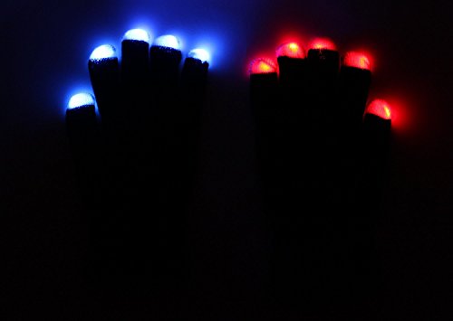 Hndtek Deluxe Large Size LED Black 6 Light Flashing Modes Gloves , For Clubbing, Rave, Birthday, Electronic dance , Disco, and Dubstep Party, Unisex Gloves,(1,Black)