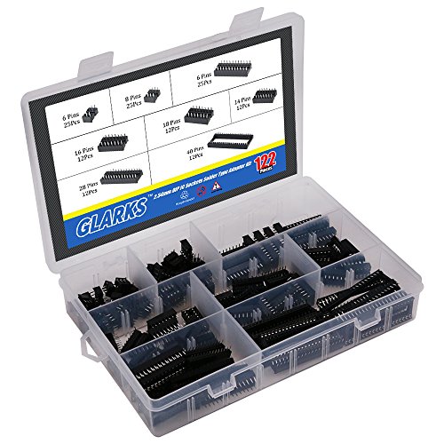 Glarks 122Pcs 2.54mm Pitch DIP IC Sockets Solder Type Adaptor Assortment Kit (6 / 8 / 14 / 16 / 18 / 24 / 28 / 40 Pins)