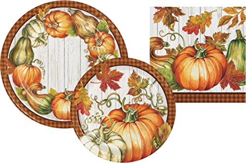 Fall Pumpkin Harvest Party Supply Pack! Bundle Includes Paper Plates & Napkins for 8 Guests in an Autumn Harvest Plenty Design