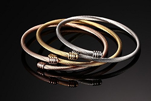 -. Title : Stainless Steel Cable Wire Cuff Bangle Bracelet,Gold,Rose Gold,Silver,3mm Width,Set of 3