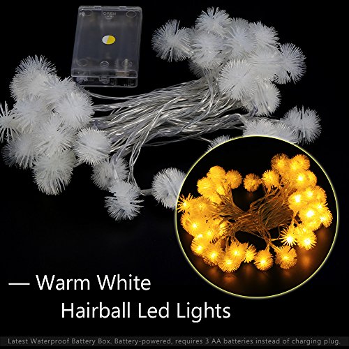 - Fairy Design : This cute LED string light with 40 Five-pointed beautiful hairball styled lamp beads, 6m/19feet long,One button on battery box to turn on/off, 3 x 1.5V AA batteries required (not included) , one steady on mode.