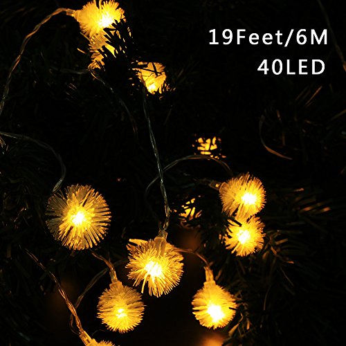 Battery Operated Led String Lights, Ejoyous 6m/19ft 40 Hairball Shape LED Lights Fairy Decorative Light Lightning for Wedding Party Home Bar Garden Bedroom Outdoor Indoor Kids Play Tents (Warm White)