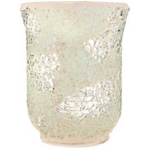 Product DescriptionAdd a touch of shimmering elegance to your home, office and event decor with this Silver White Mosaic Hurricane Candle Holder.0