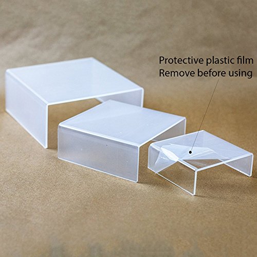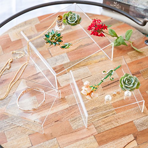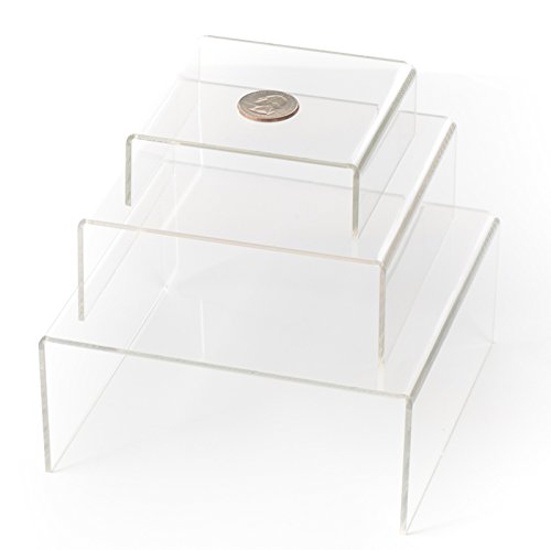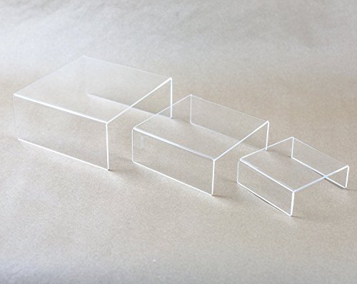 HUJI Clear Medium Low Profile Set of 3 Acrylic Risers Display Stands (1 SET, Clear Acrylic Risers)