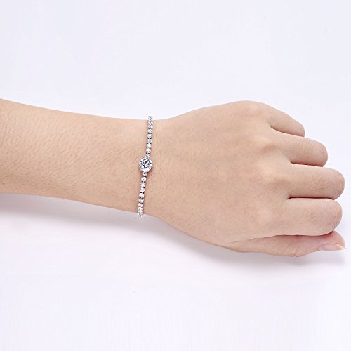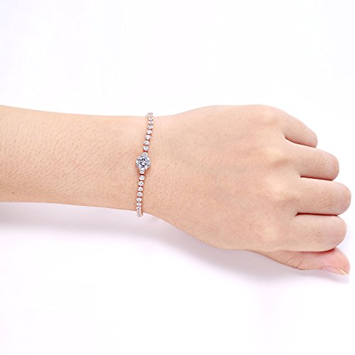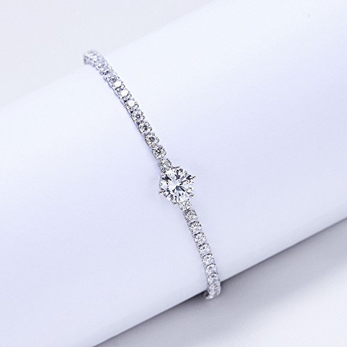 -. Feature : Prong-set cubic zirconia tennis bracelet in Brass-plated silver featuring lobster-claw-clasps / Cubic Zirconia is an affordable diamond alternative that reveals brilliant shine and a meticulous cut. / Crafted in .925 sterling silver, Nickel free & resistance against wear & tear. / Weight: 4.5g; 24cm/9.44'' Extendable,Sweet gift to your love ones. also suitable for Kids of all ages and young teens / This design is simple, classic, elegant, fit for any occasion as daily wearing home and office. Carefully packed in beautiful jewelry box.