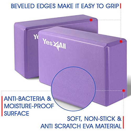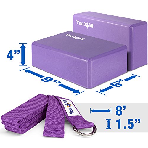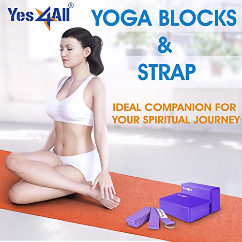 Yes4All Yoga Blocks (2 pcs x 4 inch) and Yoga Strap with D-Ring – Multi Color Available