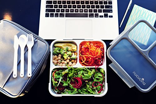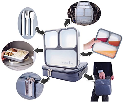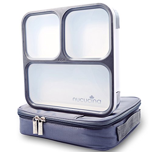 Nucucina Slim Bento Lunch Box Set - All-in-one Stylish Leakproof Food Container For Adults - Premium Square Design With Insulated Bag And Cutlery - Dishwasher Microwave Safe - Modern Take On A Classic