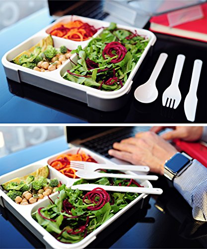ALL-IN-ONE SLIM DESIGN - Offers a space saving design so you can fit it perfectly in your briefcase, tote bag or backpacks. Comes with cutlery too!