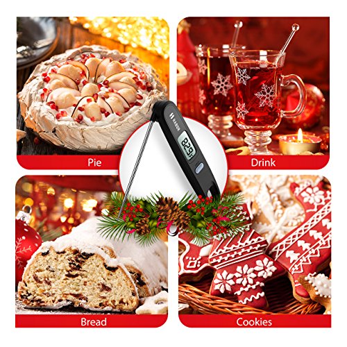 - 【SUPER FAST Instant Read Thermometer】This Meat thermometer can read out temperature in 4-6 Seconds, a must have kitchen tool for Christmas turkey, staek, cake, pie, cookie, a practical kit for Thanksgiving dinner that works great with baster and roaster
