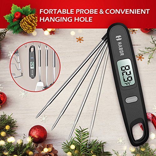 Meat Thermometers, Habor UPGRADE Instant Read Thermometer Magnetic Cooking Thermometer Electronic Food Candy Thermometer With Foldable Probe For Christmas Turkey Milk BBQ Kitchen Barbecue Grill Smoker