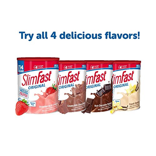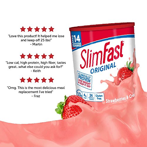 Losing weight is as easy as 1 ? 2 ? 3 when you activate the SlimFast Plan. One of the essential elements of this clinically proven weight loss program is replacing two daily meals with the great-tasting SlimFast Original Meal Replacement Shake Mix Powder. This meal replacement product that put SlimFast on the map is a great-tasting product that curbs hunger cravings for up to four hours. It contains 200 calories in each 8 fluid ounce serving, giving you plenty of energy to keep your body alert during the day. It’s also packed with vitamins, protein, essential minerals, and fiber. This meal replacement shake mix by SlimFast contains 10 grams of protein along with 5 grams of fiber and 24 essential vitamins and minerals that help your body process and burn stored fat, making it easier for you to lose weight. Weight loss can also taste great! In fact, SlimFast has received multiple awards from Men’s Health and OK! Magazine as well as the Chef’s Best Taste Award for its exceptional-tasting formula. These meal replacement smoothies can also be used as an ingredient in several recipes. One 8 fl. oz. serving contains a third of your recommended daily intake of most essential vitamins and minerals. This keeps your body running strong during the day. As part of the clinically proven SlimFast Plan, this delicious gluten-free meal replacement shake mix helps to control hunger, but does not starve your body of essential proteins. The SlimFast Plan is proven to help you lose weight fast and keep it off. Over 50 clinical studies by independent researchers confirm that SlimFast works. With the SlimFast plan, losing weight is as easy as 1 ? 2 ? 3: simply enjoy one of your favorite 500-calorie meals, replace two meals a day with SlimFast shakes, smoothies or baked treats and indulge in SlimFast snacks to satisfy your hunger. It’s easy to start any time?just Pick A Date, Lose The Weight 0 |
