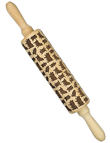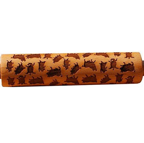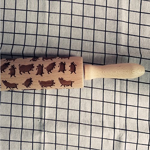 WElinks Pig Rolling Pin, Wooden Laser Engraved Rolling Pin with Pig Pattern, Embossed Hardwood Pig Design Rolling Pin, Perfect for Baking, Cooking and Playing with Kids 38cm