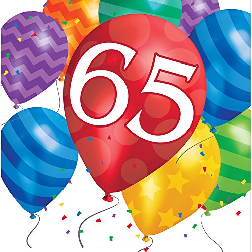 Creative Converting 16 Count 65th Birthday Balloon Blast Lunch Napkins, Multicolor
