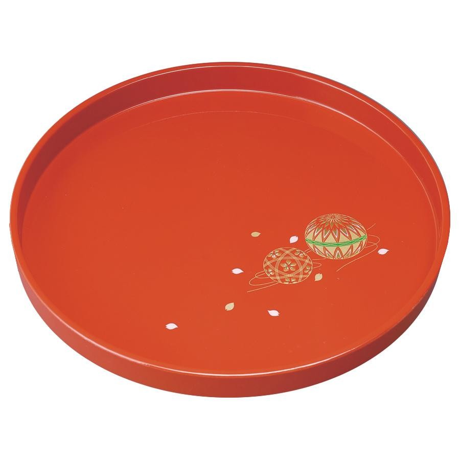 シンプルな丸盆です。 製造国:日本 素材・材質:ユリア樹脂 商品サイズ:φ30×2.5cm ※サプライヤー直送品 ご注文後2~3営業日後の出荷となります【商品名】丸盆 朱 手まり唄 30cm 0009054