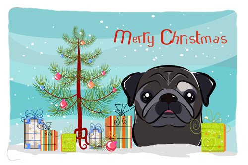 Caroline's Treasures BB1635PILLOWCASE Christmas Tree And Black Pug Fabric Standard Pillowcase, Large, Multicolor