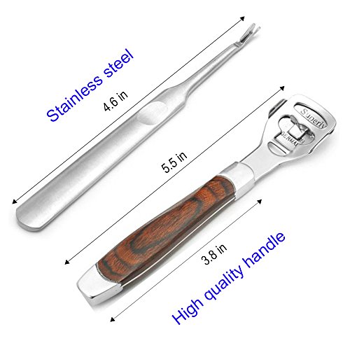 Do you find a suitable foot scraper for you? This callus shaver callus remover will satisfy your requirement. As professional foot care tool, it can focus on solving thick skin, calluses and dead skin. Adopting stainless steel, which is durable for long term to use. And it is comfortable to grip with its wood handle design. Furthermore, not only does it remove dead skin and hard corn without hurting your foot, but also its simple operation can be understood by anyone. Such a wonderful goods, just bring it home!Feature
