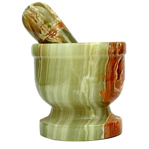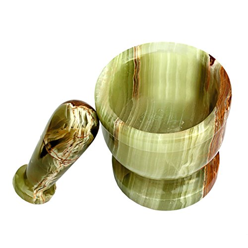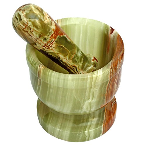 Natures Artifacts Multi Green Onyx Mortar & Pestle - Beautiful yet Sturdy for Tough Jobs - 4"