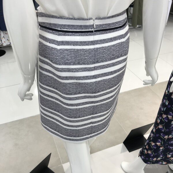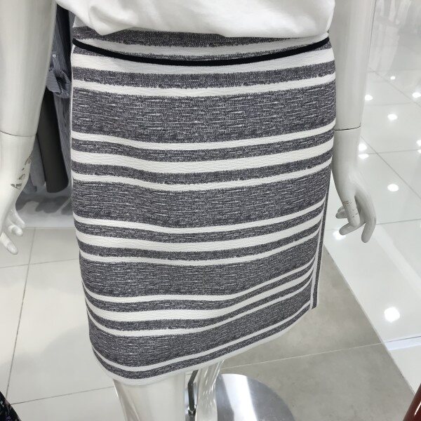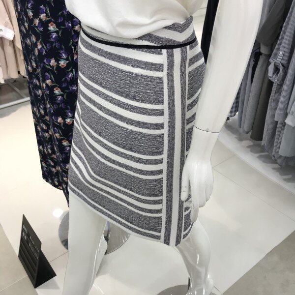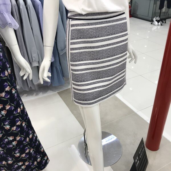 무릎위선에 깔끔한 A라인스커트입니다줄무늬 패턴이 날씬해보여요블라우스나 니트에 입기좋아요