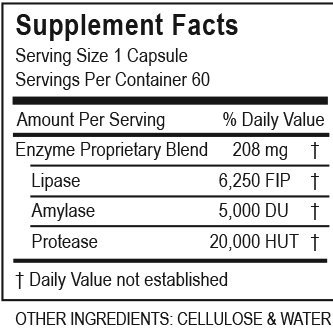 Digestive Enzymes: This enzyme-only formula is designed to assist the proper digestion of fats, starches, and proteins with particular focus on enhanced fat digestion.*