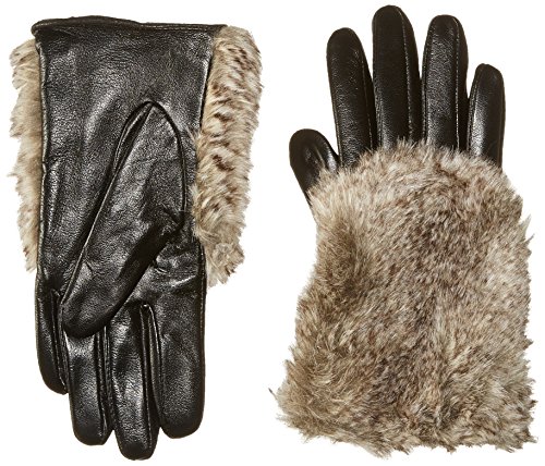 La Fiorentina Women's Sheep Leather Touchscreen Glove with Faux Fur Hand Overlay