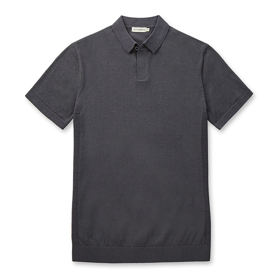 - 사이드 라인 메쉬 니트 짜임으로 포인트를 준 남성 니트 티셔츠.