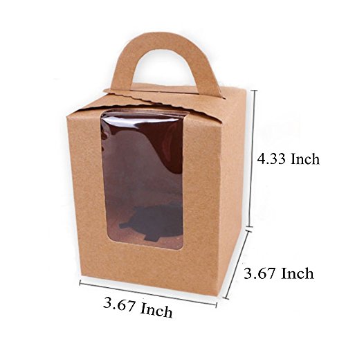 Clear Bakery Pastry Brown Kraft Paper Single Cupcake Boxes With Window And Handle Wholesale(50PCS)