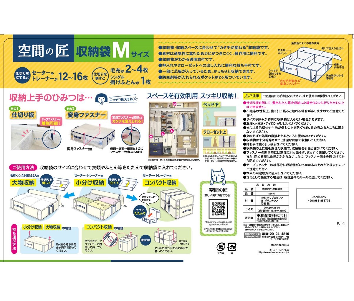● The shape, the shape changes according to the space, space "Takumi of space" 3WAY storage bag