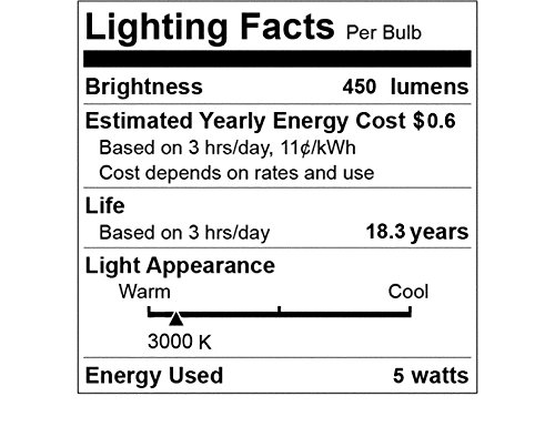 - Replaces standard incandescent 40 watt light bulb by 5 Watt LED light. Lasts at least 8 years if used 6 hours per day.