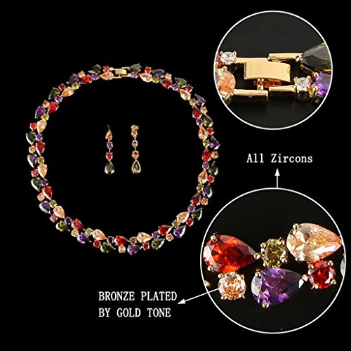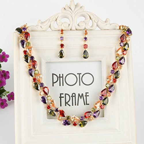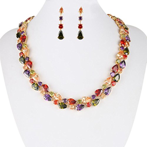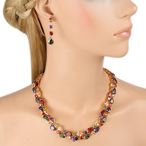 -. Title : EVER FAITH® Gold-Tone Zircon Party Double Layers Tear Drop Necklace Earrings Set Multicolor