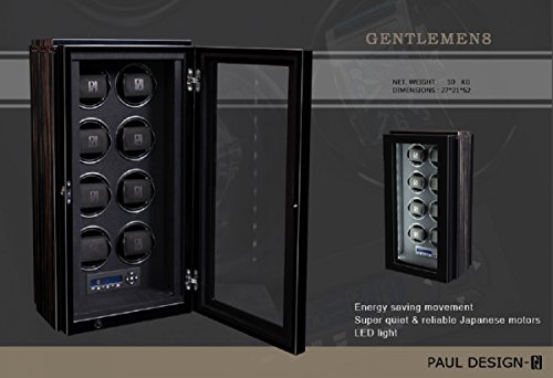 -. Binding : Watch -. Brand : Paul Design -. Department : Unisex-adult -. EAN : 0709619955892 -. Feature : 2 Year Manufacturer Warranty / LED Lighting / Power winding functions and Sleep Mode Option / Can wind 1 to 8 watches Multiple programming for any automatic watch / Self adjusting watch holders are designed to fit all size of watches -. Label : Paul Design Watch Winders -. Manufacturer : Paul Design Watch Winders -. Model : Gentlemen 8 -. MPN : Gentlemen 8 -. PartNumber : Gentlemen 8 -. ProductGroup : Watch -. ProductTypeName : WATCH -. Publisher : Paul Design Watch Winders -. Studio : Paul Design Watch Winders -. Title : Gentlemen 8 Watch Winder Black With Wood Grain by Paul Design -. UPC : 709619955892